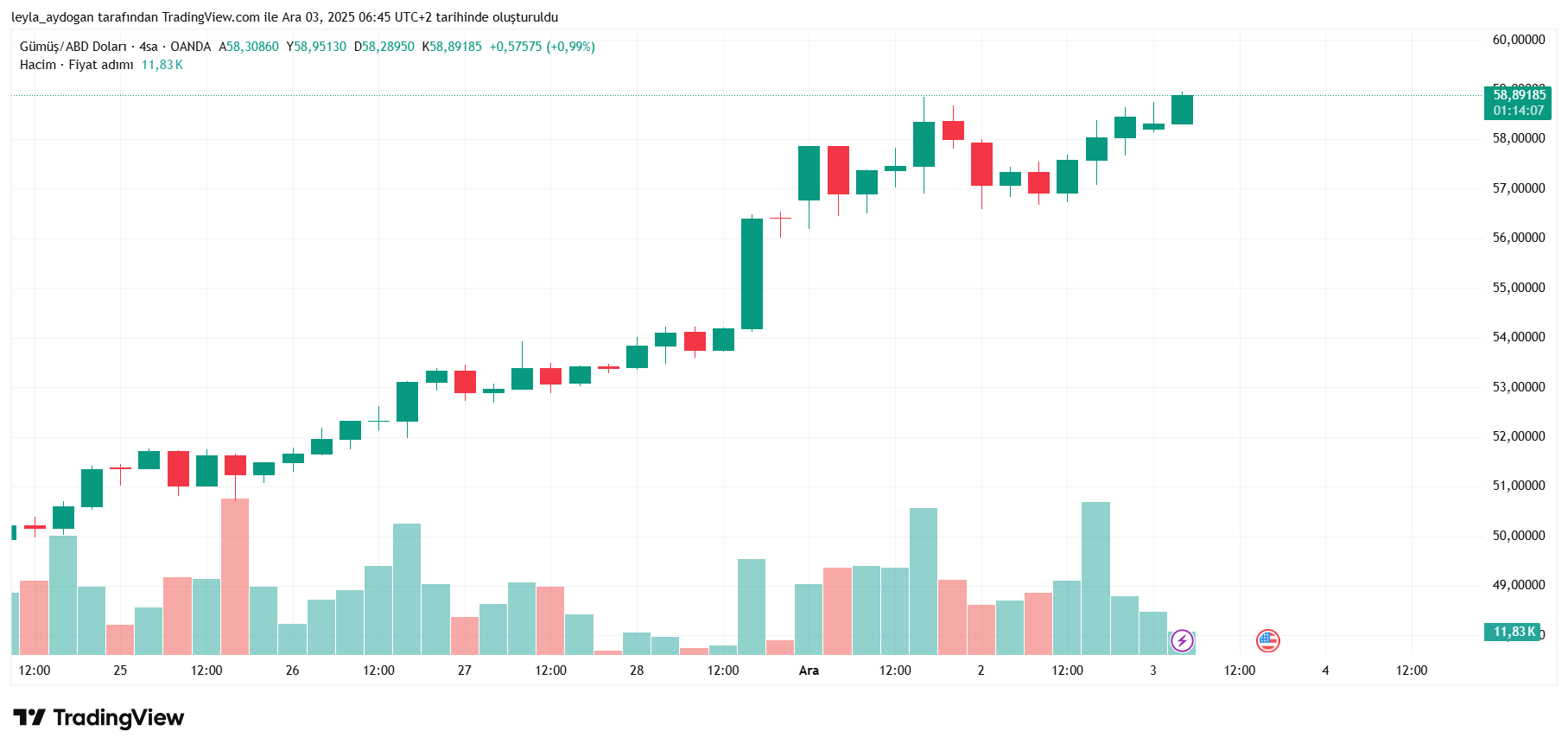 Sabah saatlerinde ise gümüşün onsu 58,87 dolarda bulunurken gram gümüş 80,27 lirada hareketleniyor.