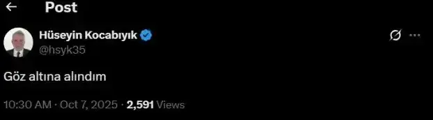 Hakkında gözaltı ve evinde arama kararı verilen Kocabıyık’ın evinde polislerin arama yaptığı bildirildi. Kocabıyık, savcılıktaki işlemlerinin ardından adliyeye sevk edildi. Hüseyin Kocabıyık çıkarıldığı mahkemece tutuklandı.
