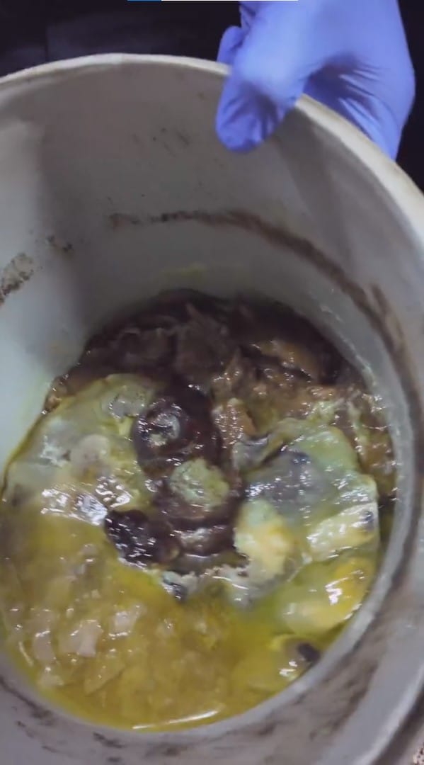 Özellikle menşei belirsiz, üzerinde üretim yeri veya tarihi bulunmayan biber salçaları, tereyağları ve peynirler dikkat çekti. Bir kovadaki sıvının ne olduğu sorulduğunda içerisindeki tanımlanamayan maddeler ve yüzeyindeki yağ tabakası ekipleri şoke etti.